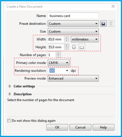 .V tem oknu določite ime in dimenzije dokumenta. Izberite polje in v vnesite .