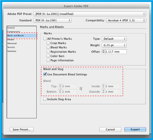 .V možnosti vnesite 2 mm (ta meja bo določila varno območje, tj. vse besedilo mora biti znotraj tega območja).