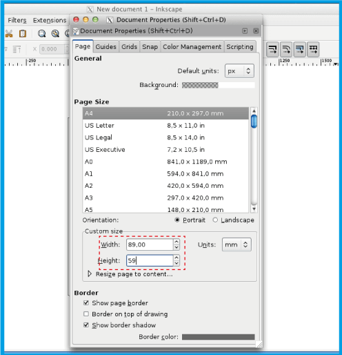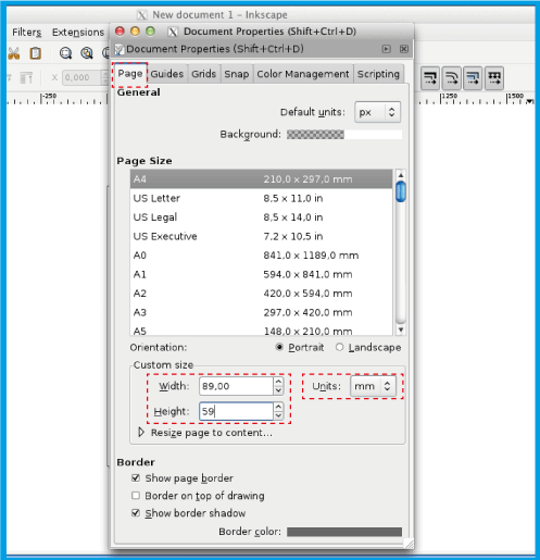 .Prepričajte se, da višini in širini dokumenta dodate 4 mm (0,4 cm). V primeru vizitke velikosti 8,5 x 5,5 cm vstavite 8,9 x 5,9 cm.