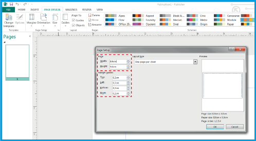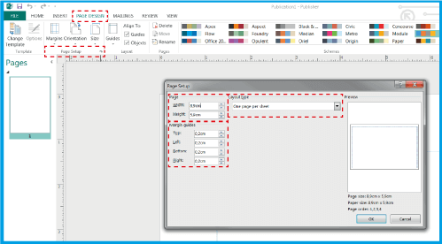 .Prepričajte se, da višini in širini dokumenta dodate 4 mm (0,4 cm). V primeru vizitke velikosti 8,5 x 5,5 cm vstavite 8,9 x 5,9 cm.