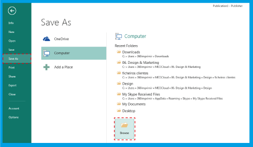 .V oknu, ki se bo odprlo, izberite shranjevanje v .